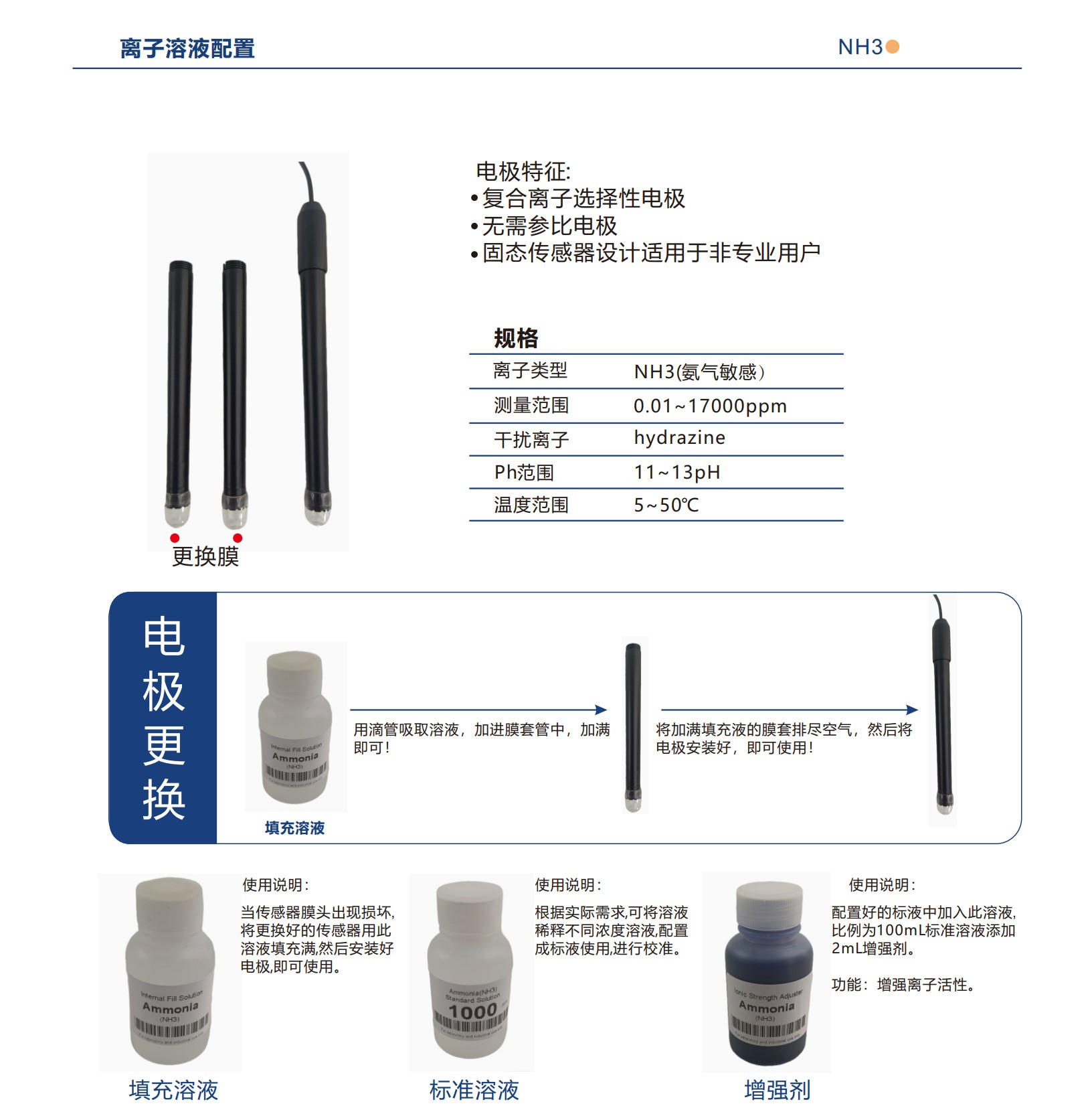 - 电极管理, 可储存3个电极斜率并调用校准数据